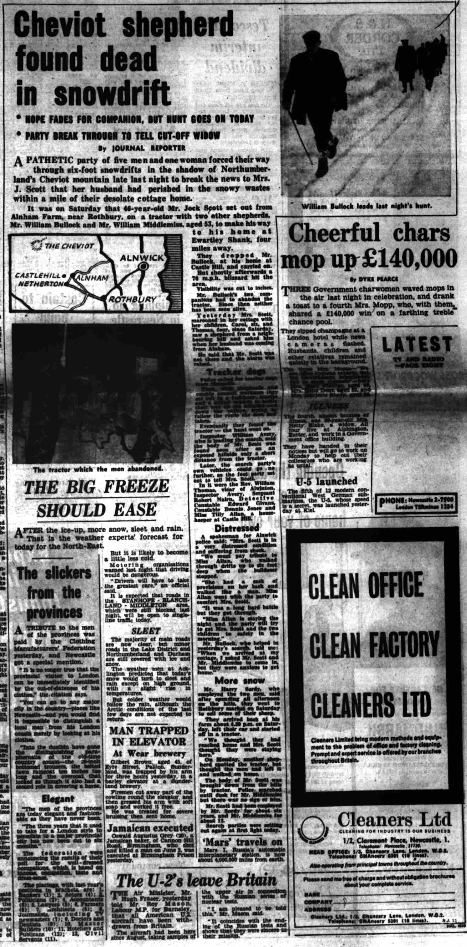 This talk is to commemorate the 60th anniversary of the death of two shepherds, Jock Scott, and Willie Middlemas. who perished on Saturday 17th of November 1962 when making their way home from Rothbury Mart in a blizzard. Sally will give a brief introduction about this tragic event.
