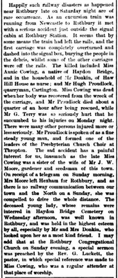 North British Railway: Rothbury Station Accident: Saturday 13th Feb 1897