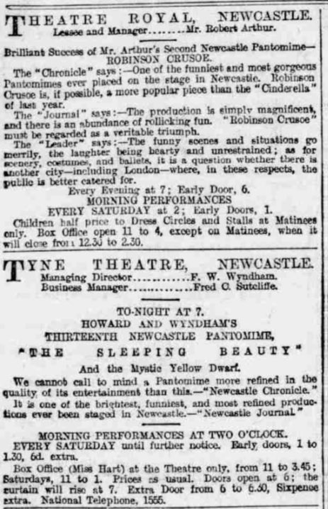 On the morning of Saturday 13th February passengers gather at Rothbury station to take the train into Newcastle to attend a 2pm matinee performance of a pantomime. There were a number of pantomimes they could have been going to; Robinson Crusoe, Sleeping Beauty or Blue Beard. (See newspaper cutting). The excursion train left Rothbury via Scots Gap and Morpeth for Newcastle at 8:12am.The journey to Newcastle is uneventful, arriving about 9:45am. Time for some shopping and lunch before the pantomime.