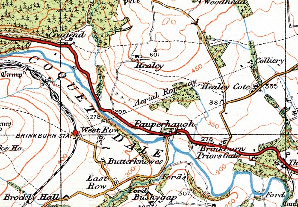 The 13-mile line between Scots Gap and Rothbury was completed in 1870. There were intermediate stations at Rothley (private but later public and renamed Longwitton), Ewesley and Brinkburn. It proved impossible to raise funds to extend the line beyond Rothbury. Brinkburn station was built to service the mine at HaelyCote colliery to which an aerial ropeway was build across the valley